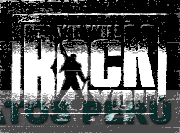 El logotipo conformado por la denominación WE WILL ROCK YOU escrita en letras características dentro de una etiqueta rectangular y la figura de un hombre con las piernas y brazos extendidos, sosteniendo una guitarra; conforme al modelo adjunto