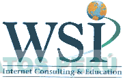 La denominación WSI escrita en letras características de color azul, la representación estilizada de un mundo sobre la letra I, y una estela que nace paulatinamente desde la parte inferior de la letra W; en la parte inferior la frase INTERNET CONSULTING & EDUCATION en color azul, enmarcada por líneas horizontales; todo en los colores anaranjado, turquesa, verde y azul; conforme al modelo adjunto