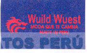 La denominación WUILD WUEST escrita en letras características; debajo la frase MODA QUE TE CAMBIA; en el extremo izquierdo la figura estilizada de la cabeza de un lobo, todo en los colores rojo y azul; conforme al modelo adjunto