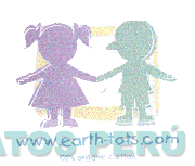 El logotipo conformado por la denominación WWW. EARTH-TOTS.COM escrita en letras características, acompañada de la figura estilizada de la silueta de una niña y un niño tomados de la mano, sobre un fondo irregular y frases alusivas al producto sin reivindicar; todo en la combinación de colores lila, verde en diversas tonalidades y celeste; conforme al modelo adjunto