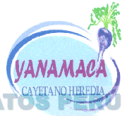 El logotipo conformado por una figura oval que contiene la denominación YANAMACA y debajo la denominación CAYETANO HEREDIA, ambas escritas en letras características, en la parte superior derecha la representación estilizada de una verdura, todo en los colores morado en diversas tonalidades, celeste y verde; conforme al modelo adjunto