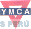 El emblema triangular conteniendo en una franja horizontal las letras YMCA en los colores rojo y azul, conforme al modelo adjunto