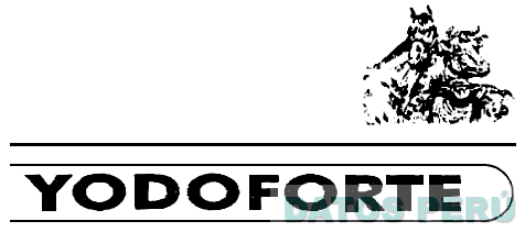 La denominación YODOFORTE (sin reivindicar la denominación YODOFORTE) escrita en letras características y la figura de cuatro animales (caballo, vaca, cerdo y oveja), sin reivindicar colores; conforme al modelo adjunto