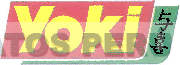 El logotipo conformado por la denominación YOKI escrita en letras características, al lado derecho se aprecia caracteres que representan letras japonesas, ambos contenidos dentro de figuras de forma irregular, en los colores amarillo, rojo, verde y negro; conforme al modelo adjunto.