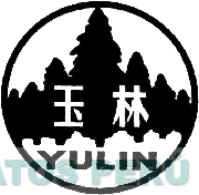 El logotipo circular que contiene la denominación YULIN escrita en letras características, sobre la cual se aprecia dos caracteres chinos, y el diseño estilizado de la silueta de unos pinos, en los colores negro y blanco; conforme al modelo adjunto