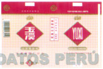 LA ENVOLTURA RECTANGULAR DE FONDO COLOR BLANCO, CON PEQUEÑOS CIRCULOS MELON ALARGADA HORIZONTALMENTE QUE POSEE DOS CARAS PRINCIPALES TENIENDO EN LA PARTE SUPERIOR UNA BANDA HORIZONTAL COLOR ROJO CON BORDE INFERIOR COLOR DORADO, EN AMBAS CARAS SE MUESTRA LA REPRESENTACION ESTILIZADA DE UN DRAGON EN COLOR DORADO