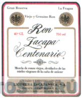 LA DENOMINACION ZACAPA CENTENARIO Y ETIQUETA CONSTITUIDA POR DOS DISEÑOS CIRCULARES, UNO A CADA LADO, TODO EN LOS COLORES NEGRO, ROJO, BLANCO Y DORADO, CONFORME AL FACSIMIL ADJUNTO,