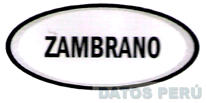 La denominación ZAMBRANO escrita en letras características dentro de una figura ovalada sombreada, sin reivindicar colores; conforme al modelo adjunto