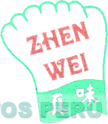 El logotipo conformado por un gorro de cocinero donde en el interior se aprecia la denominación ZHEN WEI escrita en letras características en los colores verde, rojo y blanco; conforme al modelo adjunto