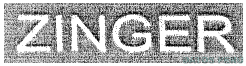 El logotipo rectangular que contiene la denominación ZINGER escrita en letras características, sin reivindicar colores; conforme al modelo adjunto