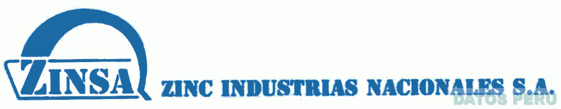 La denominación ZINSA escrita en letras características entre dos líneas horizontales que se unen por el lado izquierdo; por encima de ella se aprecia una línea curva que termina en una línea inclinada; al lado derecho, la denominación ZINC INDUSTRIAS NACIONALES S.A. escrita en letras características; todo en color azul; conforme al modelo adjunto