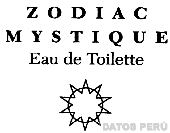 LA DENOMINACION ZODIAC MYSTIQUE ESCRITA EN LETRAS CARACTERISTICAS Y EL DISEÑO ESTILIZADO DEL SOL; CONFORME AL MODELO ADJUNTO, SIN REIVINDICAR LA FRASE EAU DE TOILETTE